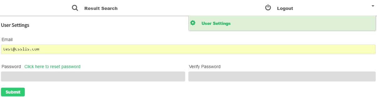 The password that is set here will be valid for up to 90 days. At any time, if the user decides they would like to change their password, they can do so by hovering over the Logout menu link and clicking on User Settings.
